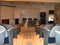 O anfiteatro possui capacidade para 35 pessoas, paredes acústicas e poltronas confortáveis. Disponibilizamos TV, Vídeo, Flip Chart, Retro Projetor, Quadro branco, Tela para Projeção, computador e Data Show.