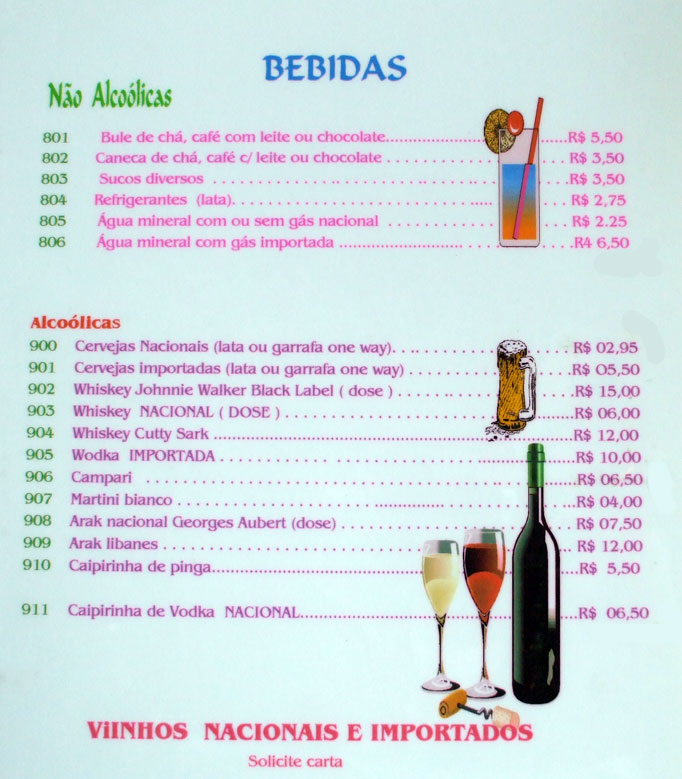 Bebidas do Restaurante Pirâmide em Barão Geraldo